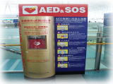 AED是對呼吸、脈搏、心跳停止患者作心臟按摩急救的機器。由於操作簡單,現在在日本機場、百貨公司等許多公共場所都開始設置。